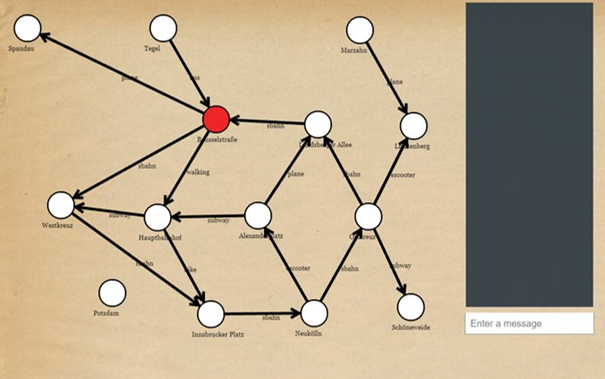 Eine Person ist in der Stadt unterwegs, kennt den Weg zum angesteuerten Ziel aber nicht. Um sich im Straßennetz zurecht zu finden und im Ziel anzukommen wird also Hilfe benötigt. Eine Freundin sitzt gemütlich Zuhause und hat die Stadtkarte vor sich liegen. Allerdings weiß er*sie nicht, wo genau sich die orientierungslose Person befindet. Nun müssen die beiden die Person in der Stadt gemeinsam zum Ziel bringen.