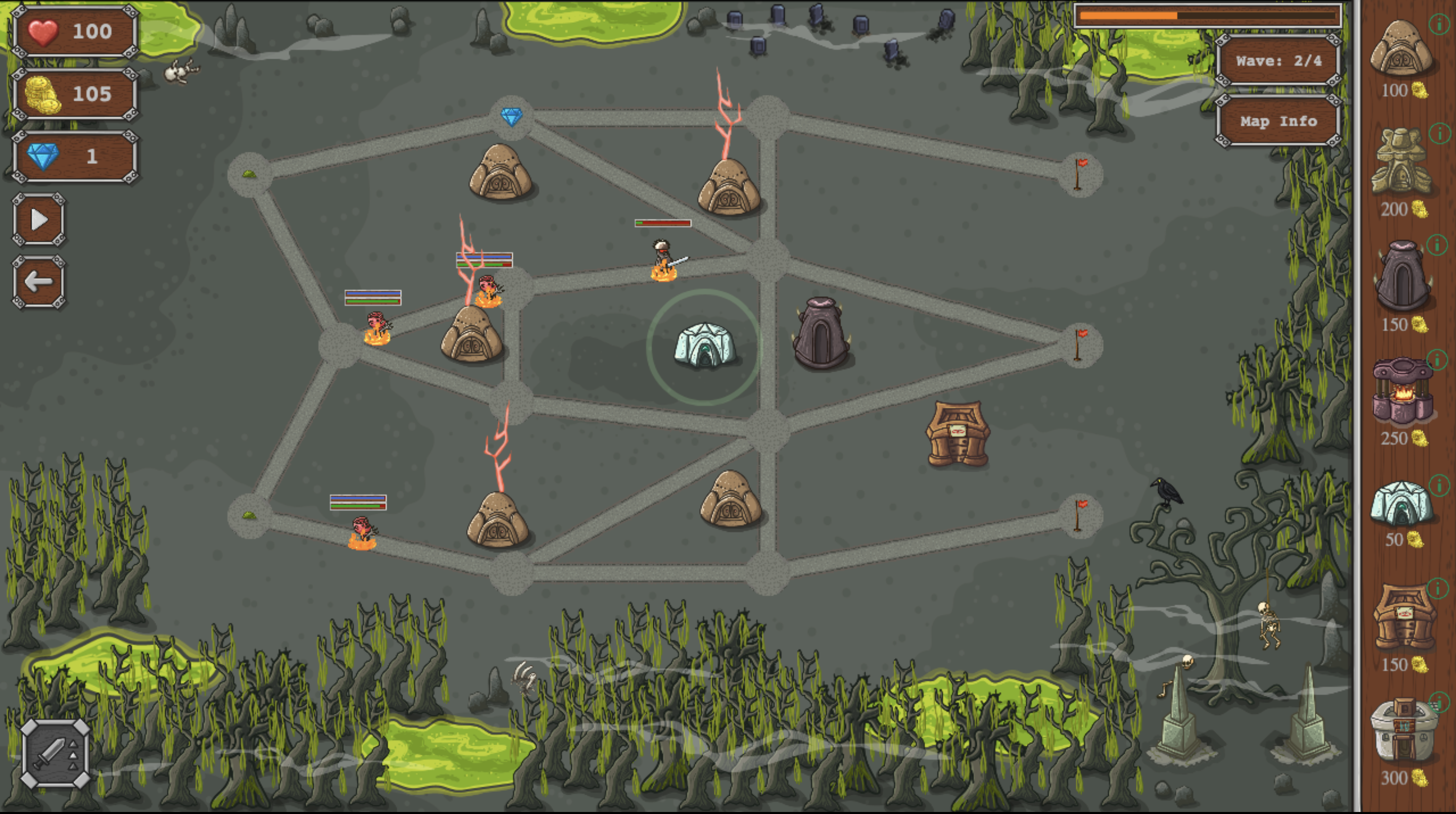 „Kampf um Neuenhagen“ ist ein fesselndes Tower-Defense-Spiel. Verschiedene Gegnerarten bewegen sich von ihren Spawnpunkten über die weitläufige Karte und versuchen, ihr Ziel zu erreichen. Deine Mission ist es, dies zu verhindern. Du kannst beeindruckende Türme mit vielfältigen Fähigkeiten strategisch platzieren. Meistere vier packende Level, um das unheilvolle Dunkel von seinen zerstörerischen Zielen fernzuhalten.